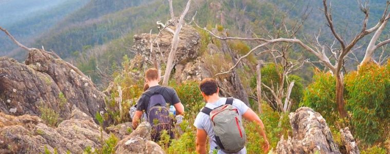 This is where the fun begins. From Sugarloaf Saddle we’re heading up to the highest point in the range, Sugarloaf Peak (903 m). Here you’ll get stunning 360 degree views of the Cathedral Range and beyond, before continuing along the Razorback Track.